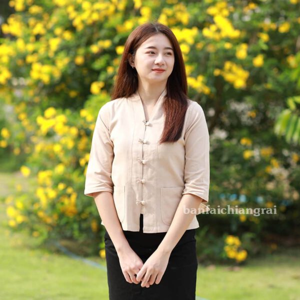 250.00 ฿ – 310.00 ฿Price range: 250.00 ฿ through 310.00 ฿70004 เสื้อพื้นเมืองหญิง กุ้นป้ายผูกข้าง สีธรรมชาติ