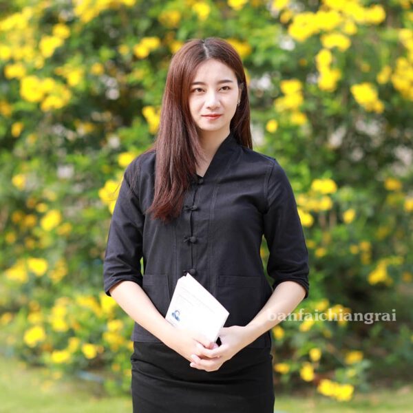 790.00 ฿50308 เสื้อผ้าฝ้ายพื้นเมืองผู้หญิง เนื้อชินมัยอัดกาว “วิสาระดี” สีดำ