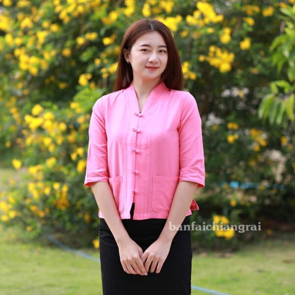 40002 เสื้อผ้าฝ้ายคอจีนแขนสั้น สีชมพู