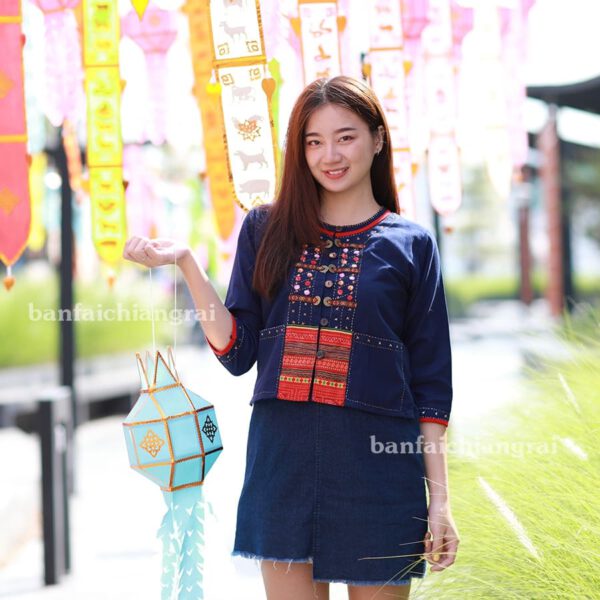 23003 เสื้อม่อฮ่อมผู้หญิง ทรงป้าย ปักมือ