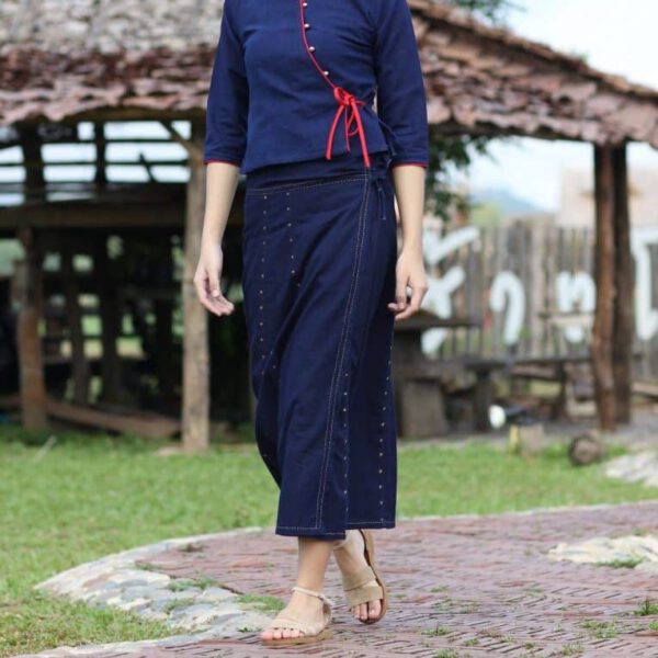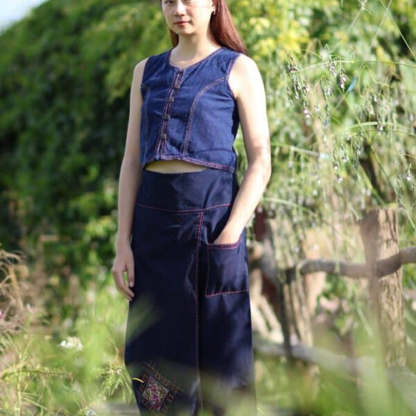 26001 กระโปรงม่อฮ่อมแบบสั้น ปักด้น