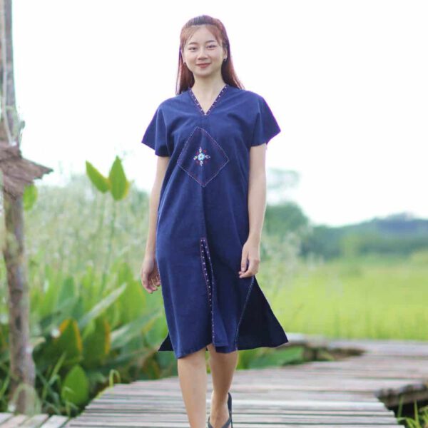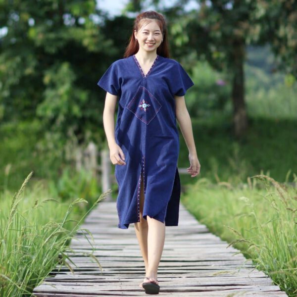 350.00 ฿24002 เดรสม่อฮ่อม แหวก 3 ด้าน
