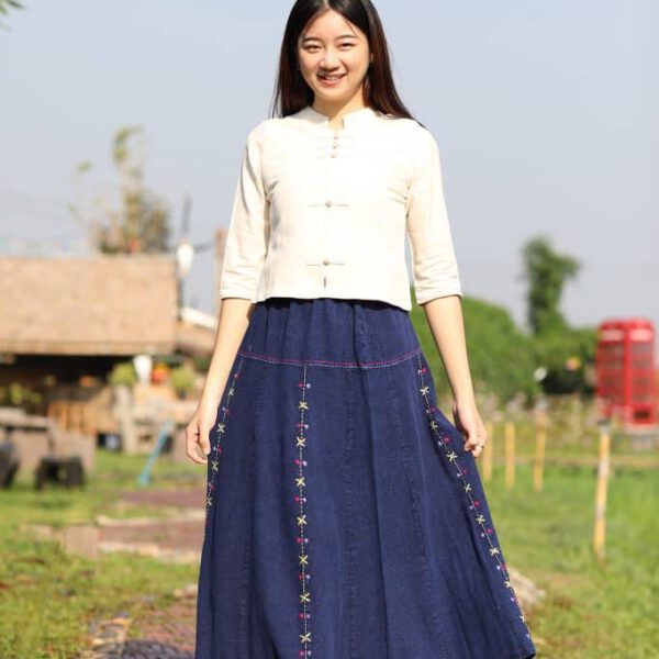 60021 เสื้อผ้าฝ้ายงานปักมือ “ปานดาว” สีกรม