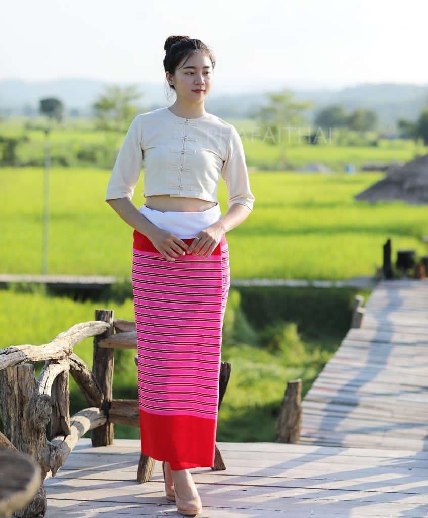 ผ้าถุงกาสะลอง ชมพู-แดง