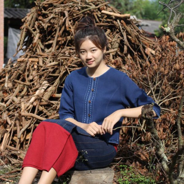 30002 เสื้อผ้าฝ้ายอัดกาวชาย สีม่อฮ่อม