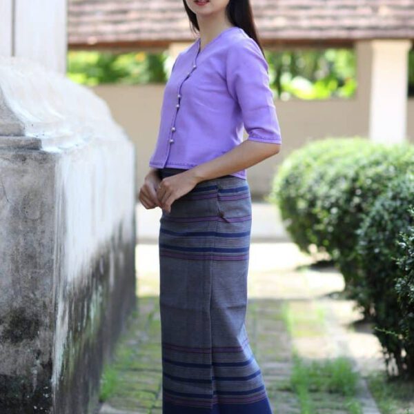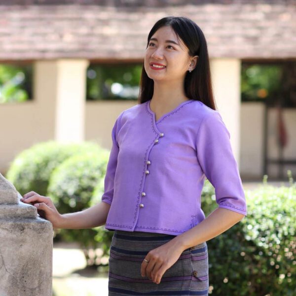 40005 เสื้อผ้าฝ้ายพื้นเมือง สีม่วง แขนยาว