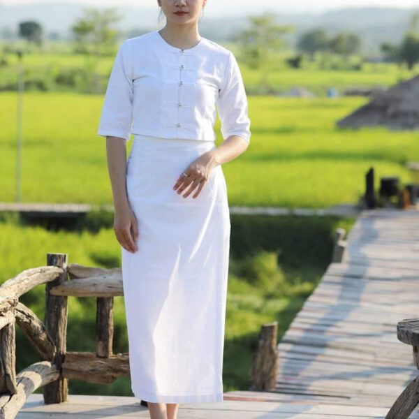350.00 ฿50007 เสื้อผ้าฝ้ายผู้หญิง ทรงคอป้าย เนื้อชินมัย “กรองทอง” สีธรรมชาติ