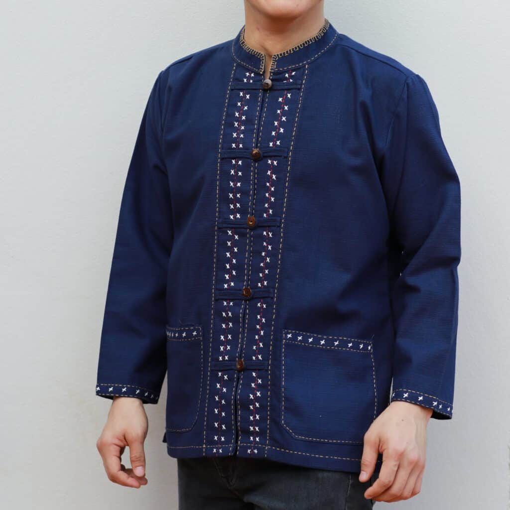 22003 เสื้อหม้อฮ่อมผู้ชาย ปักมือ คอกลม แขนสั้น